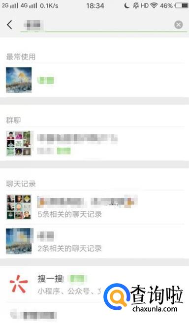 打开手机微信,在搜索栏搜索想要知道手机号码主人的姓名,如图所示。