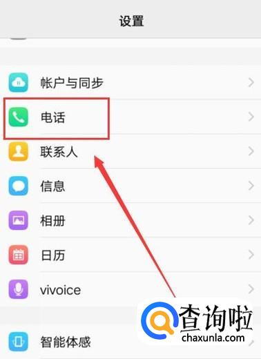 找到“电话”选项,点击并进入,如图所示。
