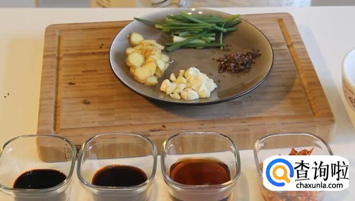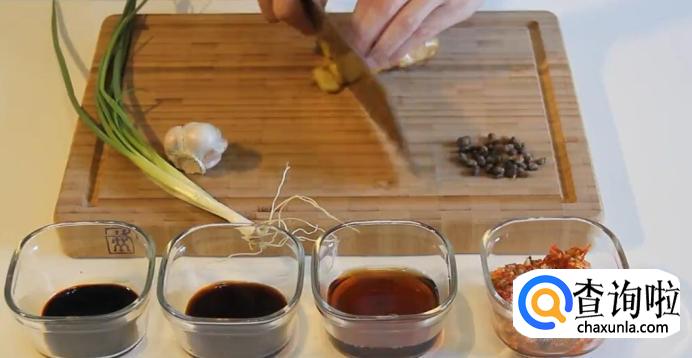 将生姜和大蒜切片,豆豉切成碎粒,香葱切段。