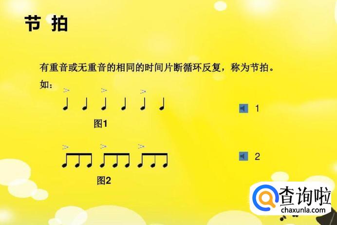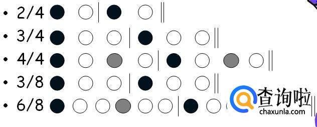 我们先来了解一下节拍,节拍是指强拍和弱拍的组合规律,具体是指在乐谱中每一小节的音符总长度,常见的1/4,2/4,3/4,4/4,3/8,6/8,7/8,9/8,12/8拍等等。