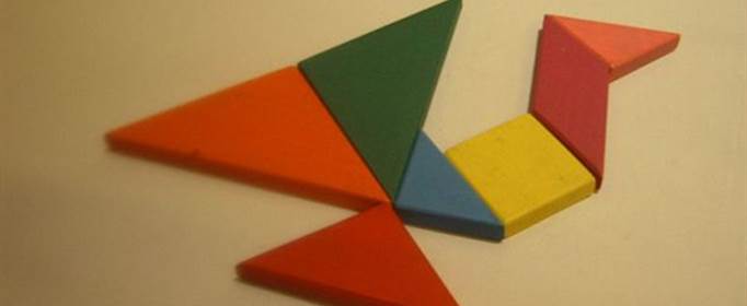 现七巧板系由一块正方形切割为五个小勾股形,将其拼凑成各种事物图形,如人物、动植物、房亭楼阁、车轿船桥等,可一人玩,也可多人进行比赛。利用七巧板可以阐明若干重要几何关系,其原理便是古算术中的“出入相补原理”。