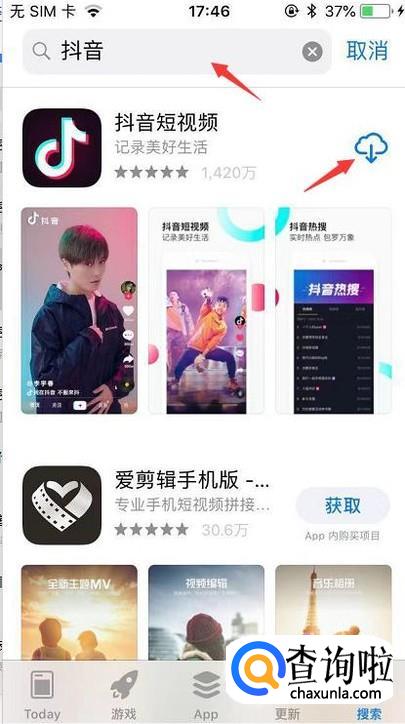 接着我们就可以在搜索框里输入抖音,搜索出来后点击右边下载。