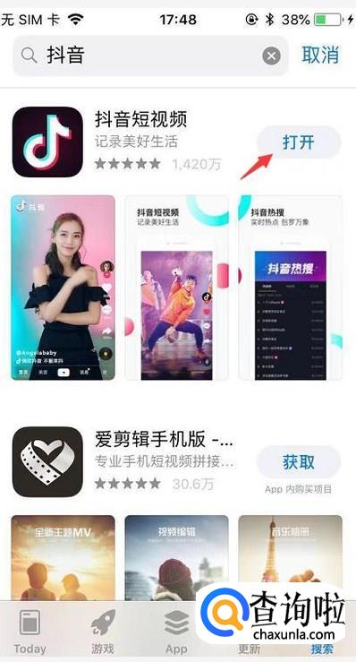 最后下载完毕,我们直接点击右边打开即可登录抖音。
