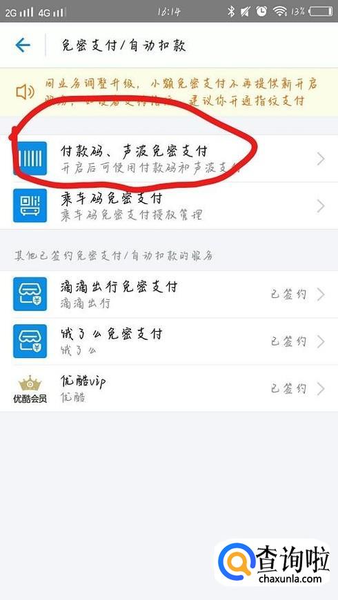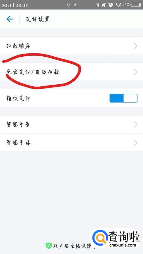 点击进入“免密支付/自动扣款”,进行免密设置,如图所示。