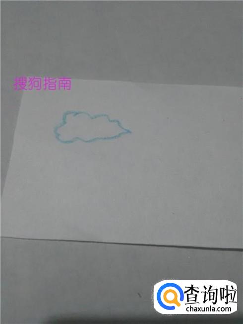 先用浅蓝色彩笔在纸上画一圈相连的弧线,表示一片云朵。