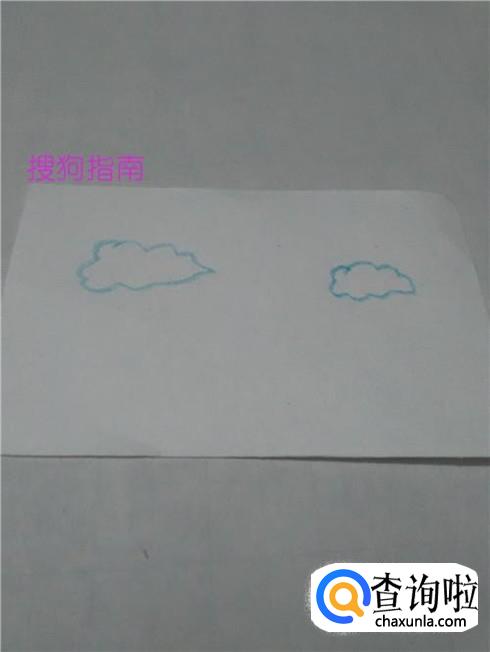 在云朵的右边再画一圈相连的弧线,表示另一片云朵,这片云朵要比左边的云朵小一些。
