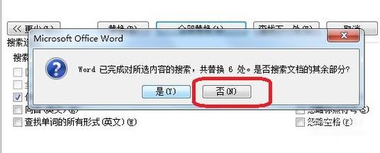 会出现提示“是否搜索文档其余部分”,我们点击“否”。