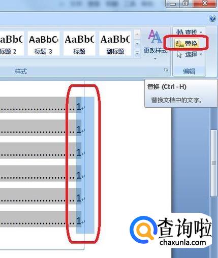 然后,我们需要选中这些页码,按住Alt键,用鼠标拖动选中所有页码,如图所示,选中后点击页面右上角工具栏中的“替换”按钮。