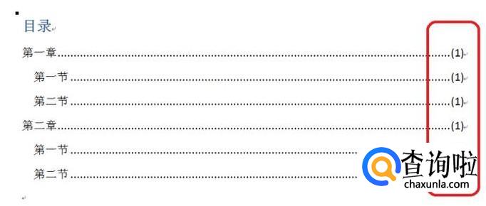 我们有的时候能看到,有的文章目录后面的每章节页码都加上了括号,这是怎么实现的呢?下面我来试着演示一下。