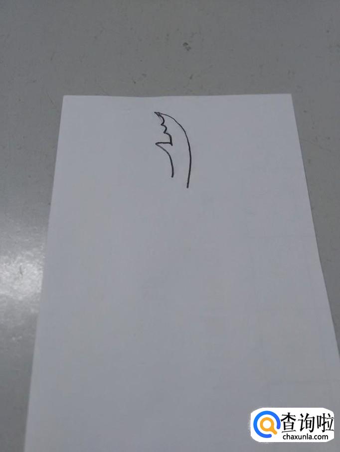 先用笔在纸上画一条弧线,表示青龙偃月刀的刀刃。