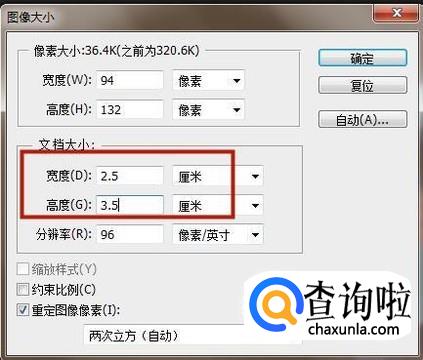接着输入宽度为2.5,高度为3.5,如下图所示。(以上高和宽为一寸照片的比例,大家可以根据自己的需要进行放大)