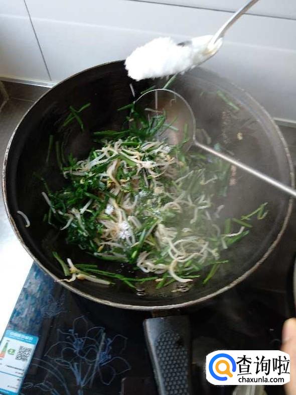 韭菜和豆芽作为这道菜的两位主料,需要事先将其洗净,并将豆芽浸泡半小时以后取出装盘备用。韭菜这需要根据需要进行切段备用。
