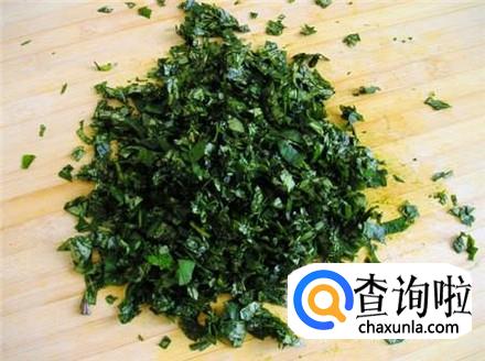 玉米面放那儿晾着,咱们把红薯叶收拾一下,红薯叶清洗干净之后不用焯水,直接剁一下然后用手把水挤出来就行了。