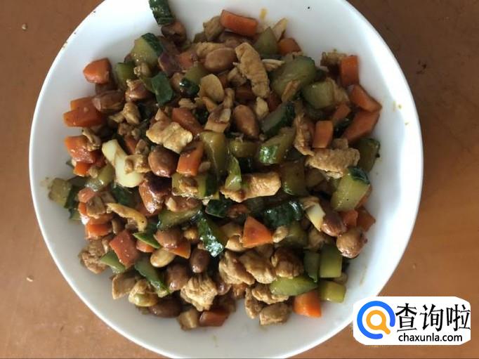 宫保鸡丁选用鸡肉为主料,佐以花生米、黄瓜、辣椒等辅料烹制而成。