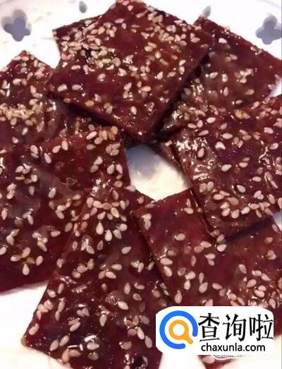 最后取出来放凉,切成块,摆入盘中,美味的猪脯肉就制作完成啦!