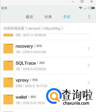 手指点一下,打开里面的内容,再从中找到“MICROMSG”;手指点一下,再打开里面的内容。在这儿找到“weixin微信”;点开“weixin微信”后,就能在这里找到你所接收下载的文件了。