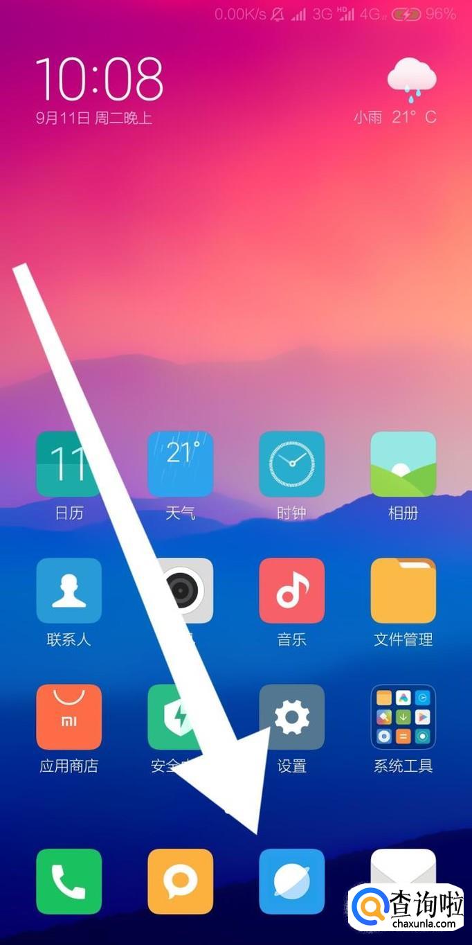 首先找到小米手机自带的浏览器,点击进入。