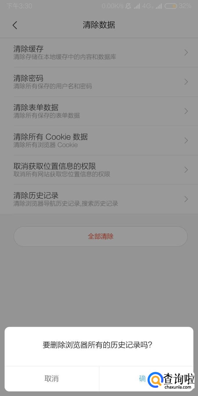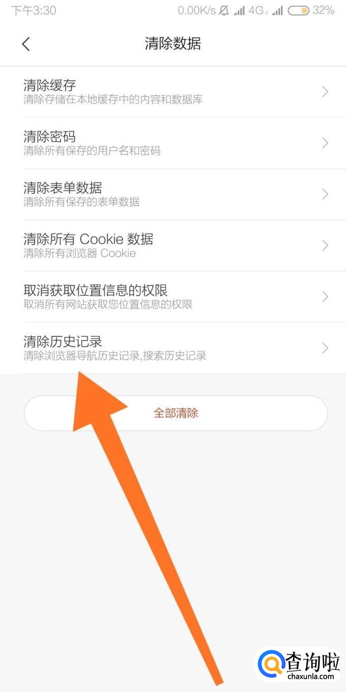 小米手机怎么清除自带浏览器历史记录、缓存