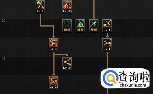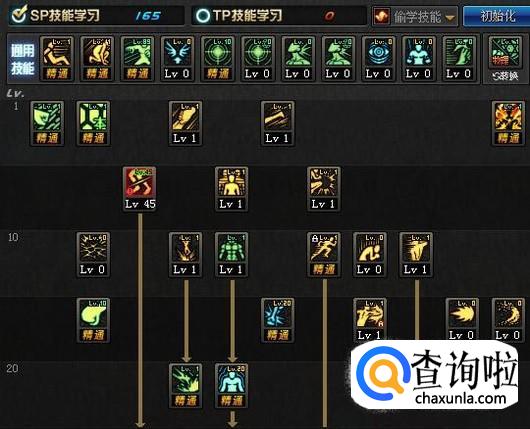 通用技能中,受身蹲伏和物理暴击点至精通,【下段踢】建议点满,可以用来柔化起手也可以用来补刀小怪;【肘击】点出1级,用来柔化瞬步方便提高过图速度。