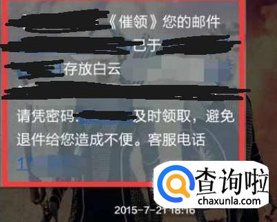 包裹到的时候我们会收到物流短信,短信中包括包裹的订单号、取件密码、取件地址等信息。