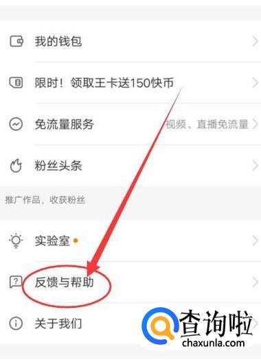 在“设置”页面找到“反馈与帮助”,点击并进入,如图所示。