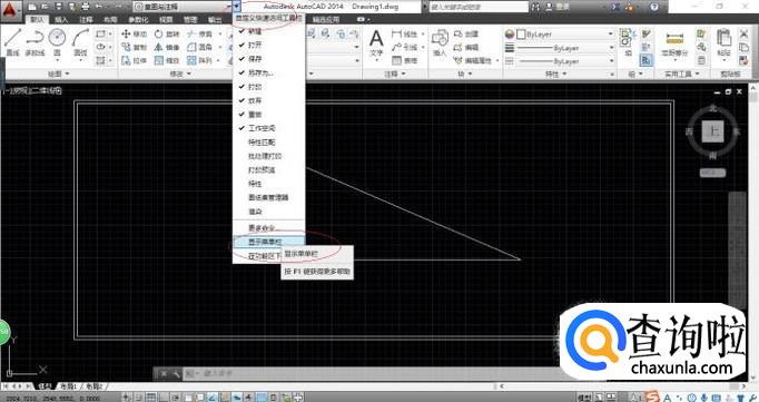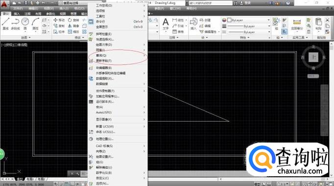 唤出"系统菜单栏"区,如图所示。点击"工具"菜单,弹出下拉菜单列表选择"查询"项。