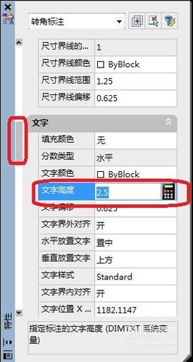 在“特性”编辑器中,如图所示,往下拉动左侧滑块,然后把“文字”下面的文字高度设置一下就可以了,比如,我设置成50。