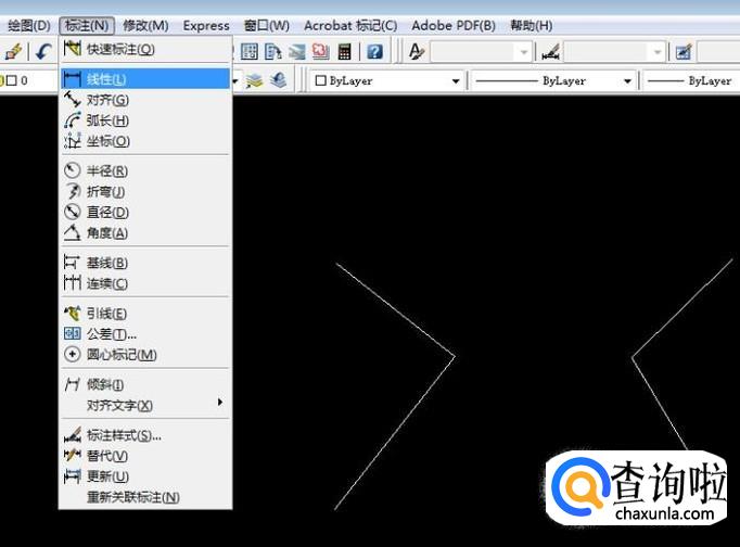 首先,我们打开CAD,通过添加标注来演示。点击菜单栏“标注”,然后点击“线性标注”。