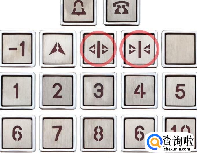 开、关门按键:这个按钮的图标是两个竖立的等腰三角形和一根坚线构成,竖线指的是电梯两扇门合拢后中间的缝隙,如过两个等腰三角形顶点指向竖线,即代表关门,若顶点朝外,则代表开门。