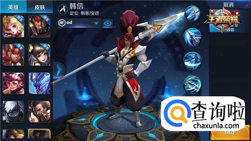 韩信也是刺客型英雄,他的生存能力较弱,但是攻击、技能效果都很高,玩韩信的时候注意控制血量。
