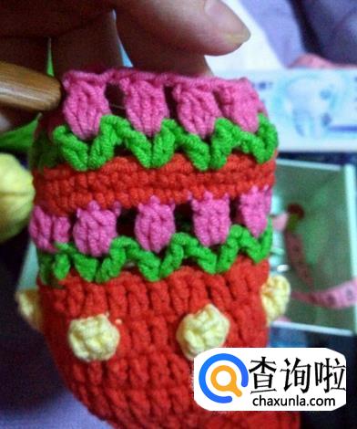 底部,第一圈起15个长针,第二圈30个长针,根据杯底的大小钩到合适的大小就行,有规律的加针就行。