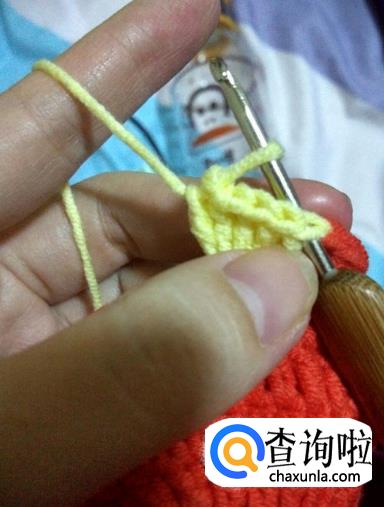 再钩花朵,在(上一圈钩辫子针的地方钩三个长针形成一个枣形针,再钩二个辫子链接)重复钩完一圈。