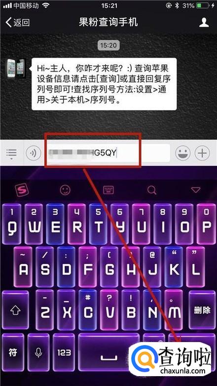 接着输入你的手机序列号并点击发送,如下图所示。