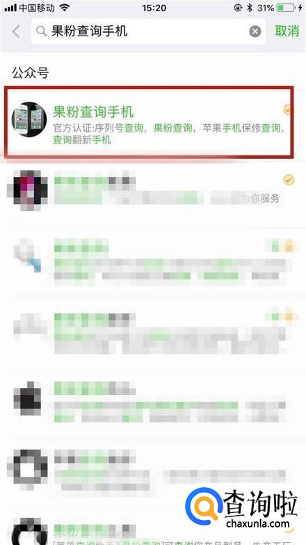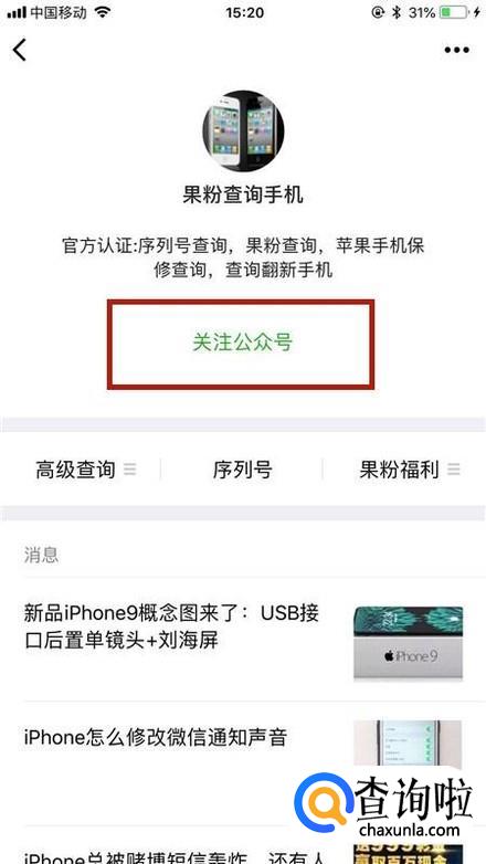 接着点击果粉查询手机公众号,如下图所示。