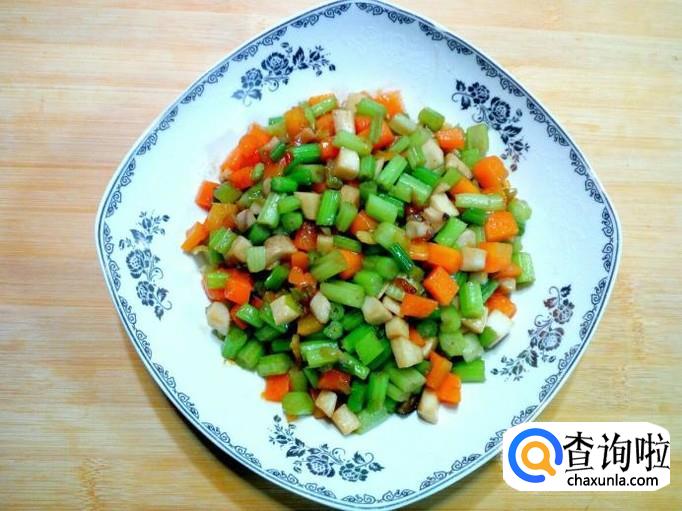 炒至香芹断生,放少许味精,关火出勺。
