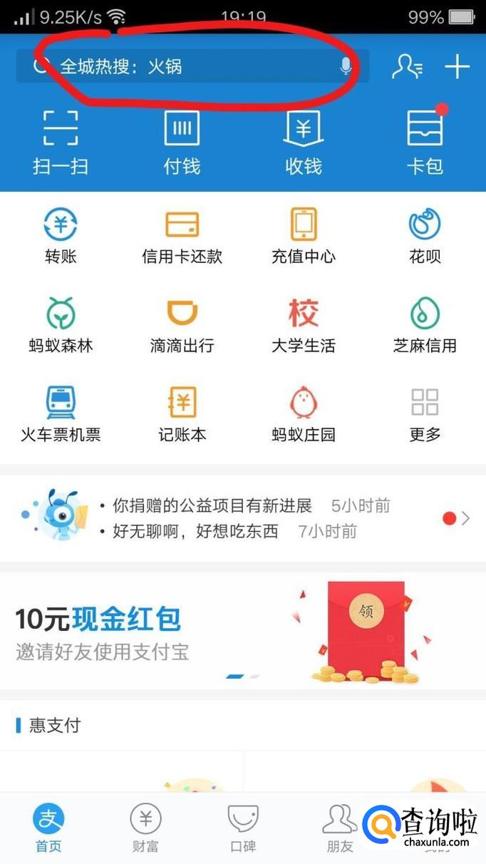 现在界面在首页,找到最上方的对话框,如下图所示。