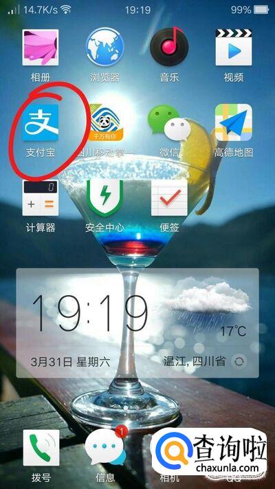首先,找到桌面上的支付宝应用,并打开,如下图所示。