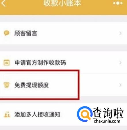 再次返回到“收款小账本”页面,我们就可以看到页面的变化。多出了一个“免费提现额度”选项。