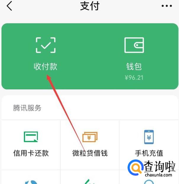 在微信收付款页面选择“二维码收款”,如图所示。
