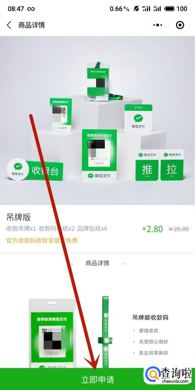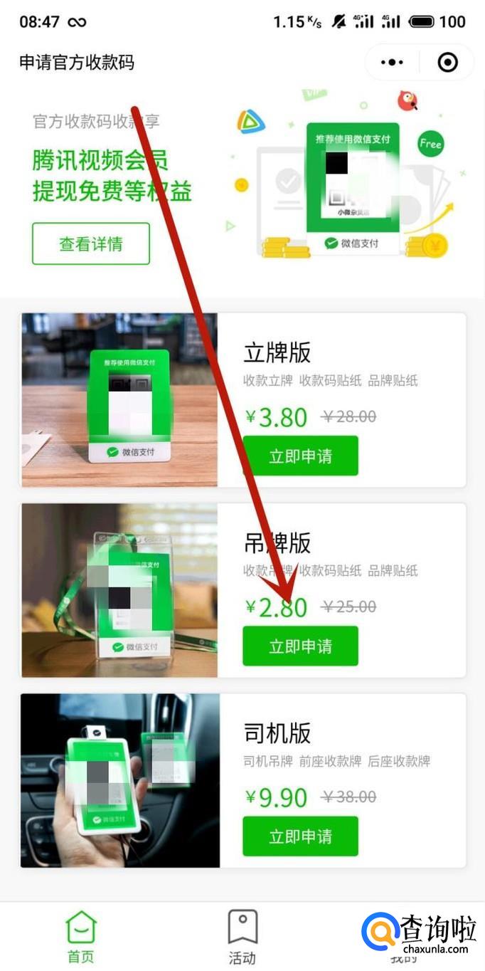 进入之后,选择一个收款码版本,点击“立即申请”,如图所示。