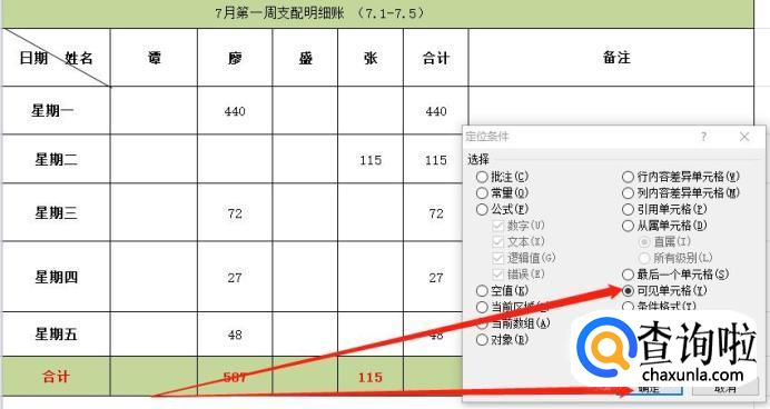 打开定位条件的对话框,再点可见单元格最后点确定。