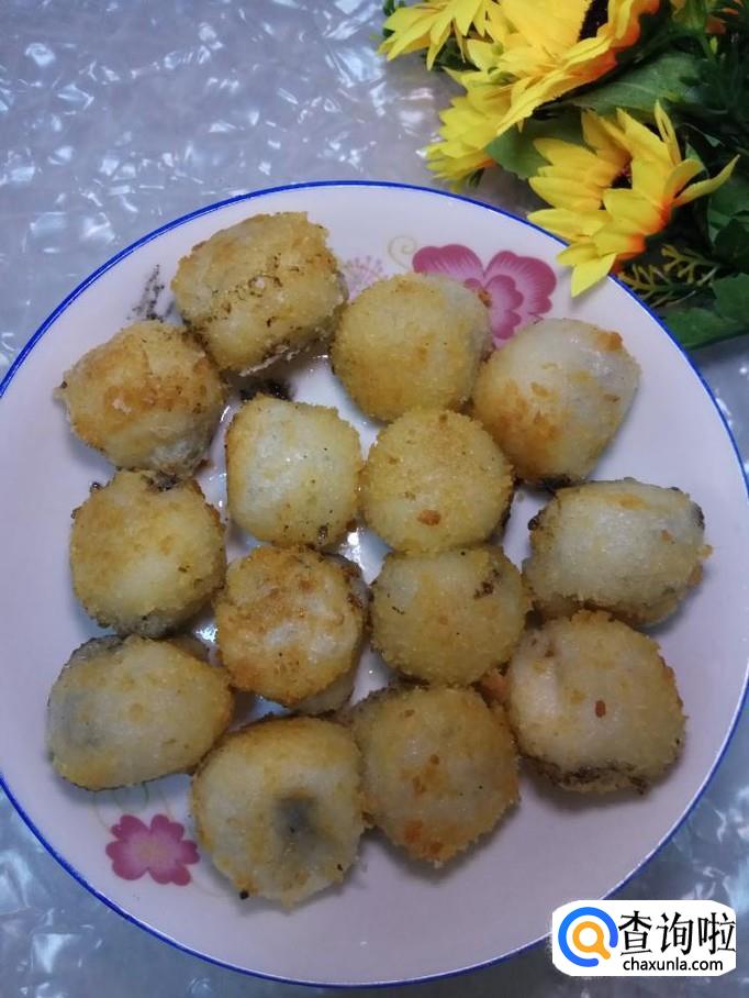 将汤圆儿炸至金黄,捞出,放入盘中可以吃了。脆皮汤圆,香甜软糯,小孩子特别喜欢吃。