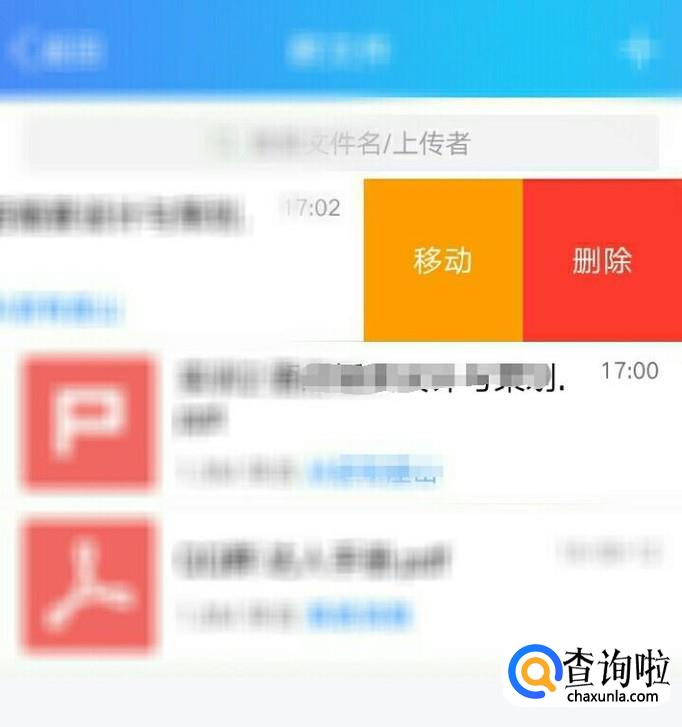 这里的文件包括了群里所有的文件,选择我们要删除的文件,把它往左滑。