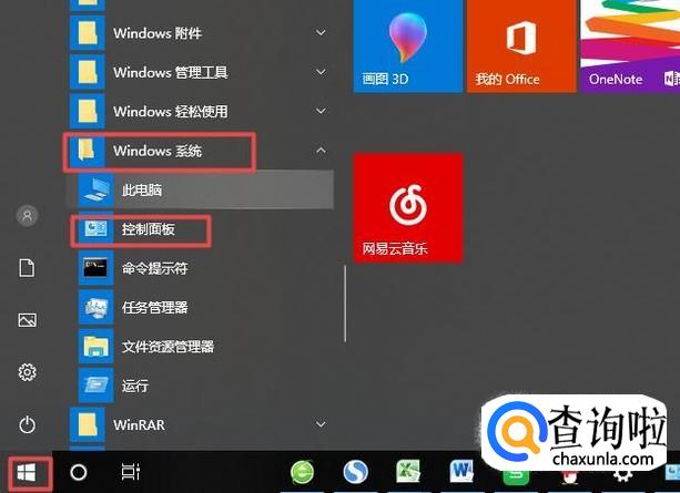 首先,我们点击电脑桌面左下角的微软按钮,弹出的界面,我们点击windows系统,之后我们点击控制面板;