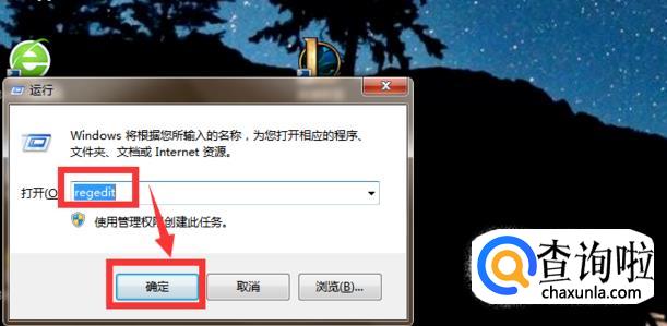 然后如果不管用还可以按电脑上的win+R键打开运行对话框,在打开输入“regedit”,点击确定。