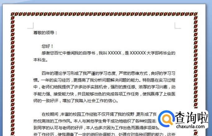 点击“确定“后,带线的页面边框就设置完成了,返回你的文档查看设置效果。