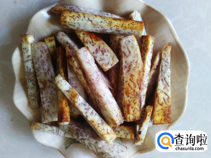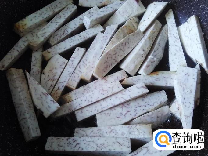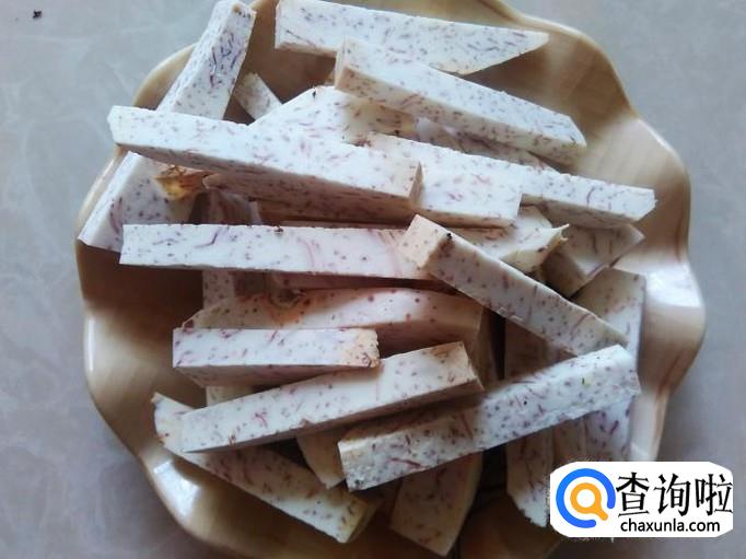 把香芋去皮,然后切成小长方条。