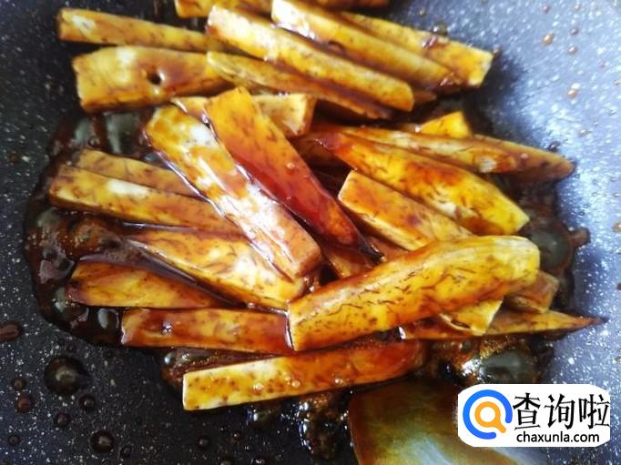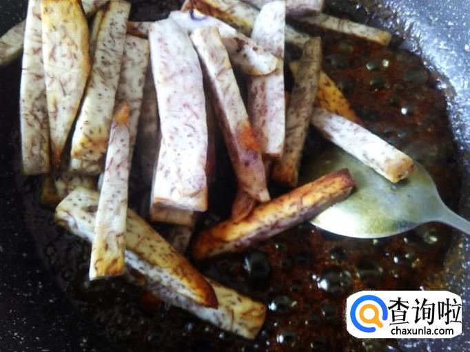 翻炒均匀,把每条香芋全面粘满糖液就可以铲上碟子食用了。