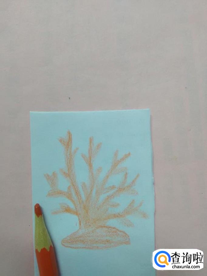 最后,用笔将珊瑚的根部涂上桔色,珊瑚就画完了。