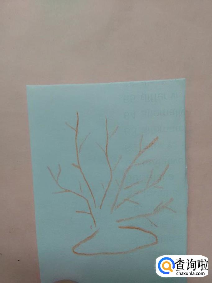再用笔将所有的树枝形状加粗,并将几条树枝下边交叉的地方涂上颜色。